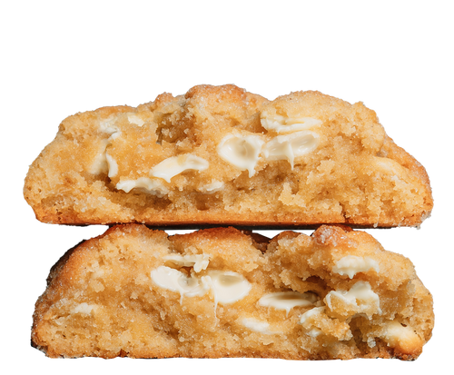 Caramelised dough with roasted macadamias and white chocolate.
